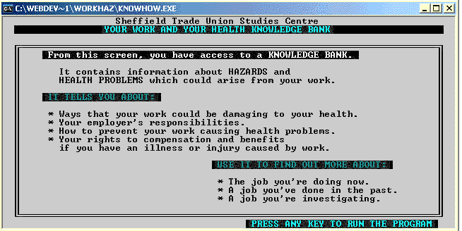 - Knowhow.exe: the "Your work and your health" interface program.